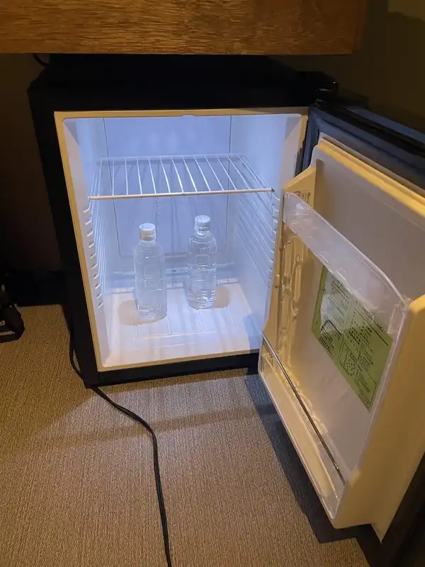 そして机の下には冷蔵庫まで。水が用意されているので飲み物は不要で、持ち込みの飲料があってもしっかり冷やすこともできますね…!