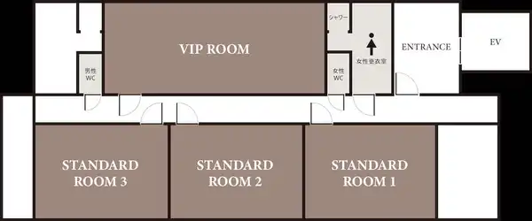STANDARD ROOMは2人まで、VIP ROOMは4人まで利用できます。