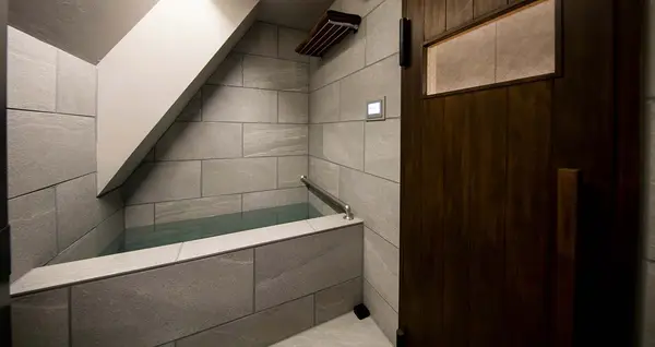 さてじっくり温まったら次は水風呂へ。プライベートサウナではシャワーしかないところも多いですが、ここは水風呂が完備されており、温度も16℃とキンキンです。
