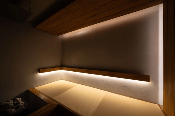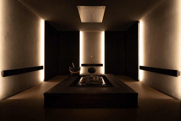 SAUNA OOOは東京・福岡にも展開している「月」を象徴的に取り入れた和モダンなプライベートサウナです。