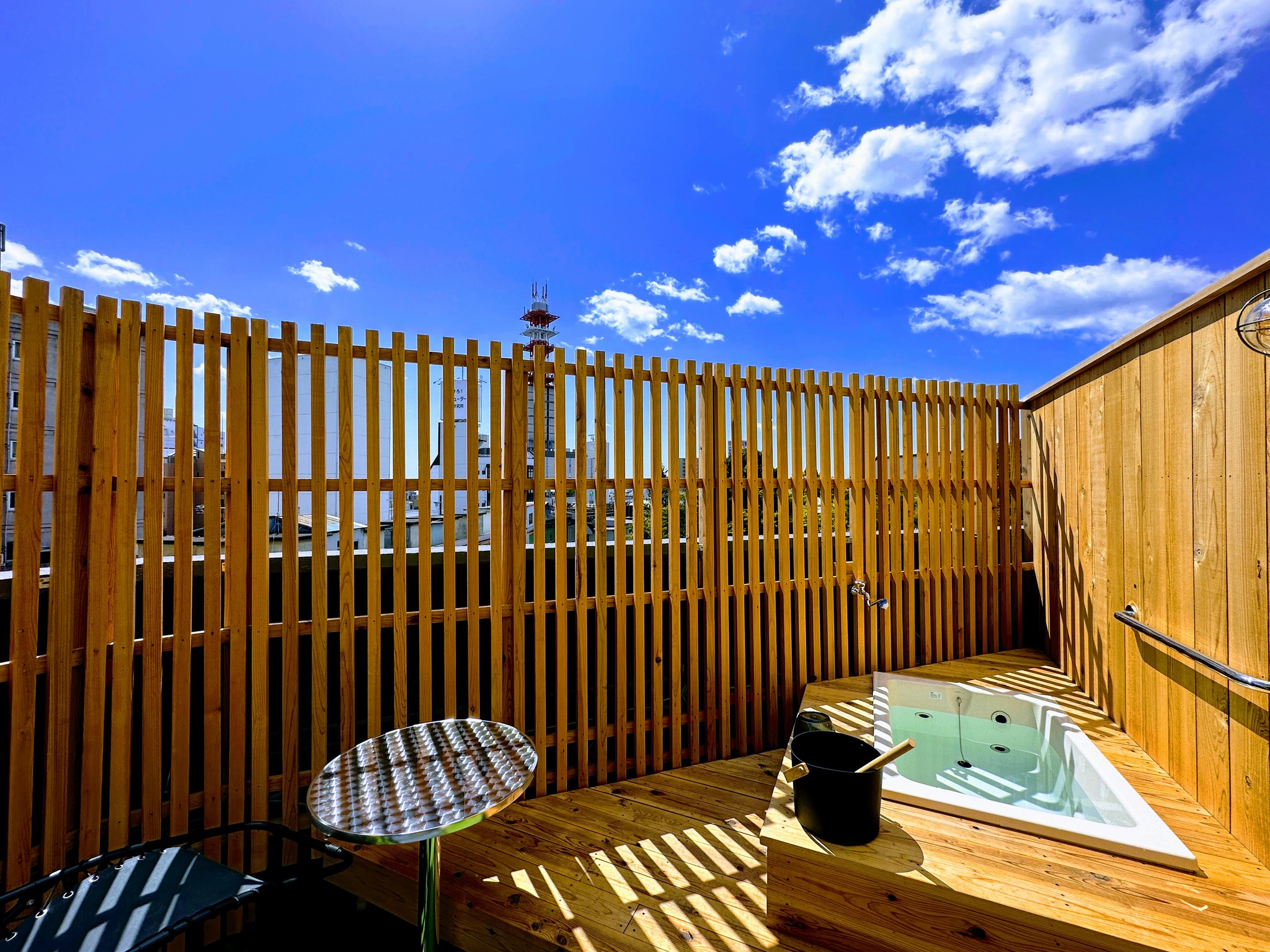 外気浴ができるので、水戸の町並み、水戸の空を見上げながら整うことが出来ます。